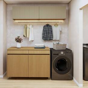 Sua lavanderia merece ser tão charmosa quanto o resto da casa! Nosso conjunto une praticidade e beleza em cada detalhe: os dois armários aéreos com porta basculante oferecem leveza e organização sem ocupar muito espaço, enquanto o balcão com amplo espaço interno guarda tudo o que você precisa, mantendo o ambiente sempre arrumado e elegante. Os pés com regulagem de altura garantem adaptação perfeita, trazendo mais conforto e segurança ao dia a dia. Mais que móveis, é um convite para transformar sua lavanderia em um espaço agradável, funcional e cheio de estilo — onde cuidar da casa se torna um prazer.