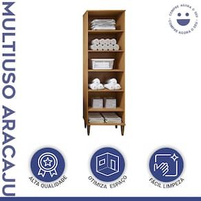 Características: Modelo: Aracaju Marca: Kaiki Móveis Material Principal: MDP Acabamento: Pintura UV Resistente à Chuva: Não Escala de Brilho: Fosco Material dos Pés: Plástico Material do Fundo: HDF/MDF Material da Estrutura: MDP Acabamento dos Pés: Pintura Acabamento da Prateleira: Pintura UV Escala de Brilho da Prateleira: Semi-Fosco Material da Prateleira: MDP Quantidade de Prateleiras: 05 Prateleiras Quantidade do Produto: 1 Tipo de Armário Multiuso: Armário Multiuso Suporta Até (kg): 60 kg Possui Rodízio: Não Possui Prateleiras: Sim Possui Portas: Não Possui Pés: 04 Altura dos Pés: 17 cm Possui Gavetas: Não Peso Máximo por Prateleira: 20 kg Estilo: Moderno Pés Reguláveis: Sim Sapatas Niveladoras: Sim Cor Flex: Não Possui Espelhos: Não Ambiente Principal: Área de Serviço Acompanha Manual de Instalação: Sim Necessita Montagem: Sim Montagem Flex: Não Complexidade da Montagem: Baixa: pode ser montado por uma pessoa sozinha Sistema de Montagem: Parafusos. Recomendações de Uso, Manutenção e Limpeza: Limpar com pano macio e levemente umedecido. Não utilizar solventes a base e de inflamáveis. Não utilizar produtos abrasivos.