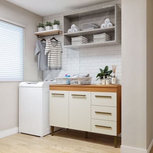 O Balcão 2 Portas 3 Gavetas Petrópolis é a solução perfeita para manter sua área de serviço organizada e funcional. Com amplo espaço de armazenamento, suas 2 portas e 3 gavetas são ideais para guardar desde produtos de limpeza até utensílios e acessórios diversos. Feito com materiais de alta qualidade, oferece durabilidade e resistência para o uso diário. Seu design moderno e versátil combina facilmente com diferentes estilos de decoração. Além disso, o balcão proporciona uma superfície prática para apoiar objetos ou realizar pequenas tarefas. Transforme sua área de serviço com elegância e praticidade! Acabamento da Gaveta: Pintura Acabamento da Porta: Pintura Acabamento da Prateleira: Pintura Acabamento dos Pés: Pintura Altura dos Pés: 17 cm Ambiente Principal: Área de Serviço codigo_ean: 7909903953242 Complexidade da Montagem: Alta: deve ser montado por um montador especializado Cor: Marrom/Off White Cor do Produto: Marrom/Off White Escala de Brilho: Fosco Escala de Brilho da Gaveta: Fosco Escala de Brilho da Porta: Fosco Escala de Brilho da Prateleira: Fosco Gaveta com Chave: Não Itens Inclusos: 1 Balcão e manual de montagem. Manual de Montagem e Instalação: https://product-hub-prd.madeiramadeira.com.br/954028/documents/a35244e7-6169-4647-9ac0-279c71bfef6a238847473217273670694092.pdf Material da Gaveta: MDP Material da Porta: MDP Material da Prateleira: MDP Material do Puxador da Gaveta: MDF Material do Puxador da Porta: MDF Material dos Pés: Plástico Material Principal: MDP Necessita Montagem: Sim Origem do Produto: Nacional Pés Reguláveis: Não Peso: 42 kg Peso Máximo por Gaveta: 5 kg Peso Máximo por Prateleira: 10 kg Porta com Fechadura: Não Possui Espelho: Não Possui Pés: 05 Quantidade de Gavetas: 03 Gavetas Quantidade de Prateleiras: 01 Prateleira Recomendações de Uso, Manutenção e Limpeza: Limpar com pano macio e levemente umedecido. Não utilizar solventes a base e de inflamáveis. Não utilizar produtos abrasivos. Sapatas Niveladoras: Não Sistema de Montagem: Parafusos e Cavilhas. Suporta Até (kg): 50 kg Tipo de Corrediça da Gaveta: Metálica Telescópica Tipo de Dobradiça/Corrediça da Porta: Metálica Tipo de Gaveta: Externa Tipo de Porta: Bater Tipo de Puxador da Gaveta: Externo Tipo de Puxador da Porta: Externo
