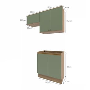 Acabamento: Pintura Fosco / Pintura Touch | Cor: Nogueira/Verde Oliva | Dobradiça: Com Amortecimento / Sem Amortecimento | Garantia: 3 meses para defeito de fabricação | Matéria-prima: MDF | Peso suportado por cada prateleira: 7 kg | Puxadores: Alumínio / Metálicos | Quantidade de portas: 1 / 2 | Quantidade de prateleiras: 1 | Sistema de montagem: Parafuso Philips | Tipo de porta: Bater