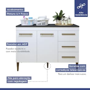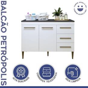 Lavanderia Petrópolis Balcão 2 Portas 3 Gavetas Kaiki Móveis Branco Lavanderia Modulada Balcao 2 Portas 3 Gavetas Petropolis Nosso conjunto de moveis para area de servico e a solucao perfeita para manter tudo organizado e funcional. Com amplo espaco de armazenamento, sao ideais para guardar desde produtos de limpeza ate utensilios e acessorios diversos. Feito com materiais de alta qualidade, oferece durabilidade e resistencia para o uso diario. Seu design moderno combina com diferentes estilos de decoracao. Alem disso, o balcao proporciona uma superficie pratica para apoiar objetos ou realizar pequenas tarefas.