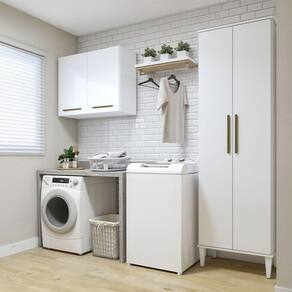 Quais sao os melhores armarios para lavanderia pequena? Os melhores modelos sao armarios com prateleiras que otimizam espaco e ajudam a organizar produtos e utensilios de forma pratica.