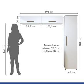 Dimensoes dos Aereos (por unidade): Altura: 30 cm Largura: 75,5 cm Profundidade: 28,5 cm
