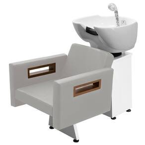 Com um design clean e autêntico, assento amplo e robusto, braços estofados com detalhes em madeira, espuma de alta densidade e assento amplo que proporcionam conforto e comodidade durante o atendimento. Cuba de porcelana branca com ajuste de altura e com ducha cromada e registro que tem a função de manocomando, que permite que você altere a temperatura da água sem precisar mexer na chave do aquecedor! Tudo isso com a alta resistência da base de ferro branco ou preta!