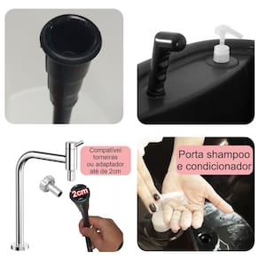 O porta shampoo/condicionador integrado permite que você tenha os produtos sempre ao alcance das mãos, facilitando o processo de lavagem e tornando-o mais eficiente. Além disso, a mangueira/ducha proporciona uma lavagem completa e eficaz, garantindo a remoção de resíduos e deixando os cabelos limpos e saudáveis.