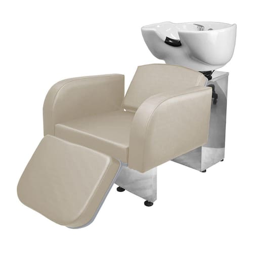 Com um design clean, braços estofados com detalhe arredondado na ponta, espuma de alta densidade, assento amplo e um apoio de pernas estofado com regulagem de altura que proporcionam conforto e comodidade para seu cliente durante a lavagem do cabelo. Cuba de porcelana branca com ajuste de altura e com ducha cromada e registro que tem a função de manocomando, que permite que você altere a temperatura da água sem precisar mexer na chave do aquecedor! Tudo isso com a alta resistência da base de inox!