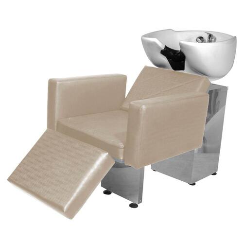 Com um design clássico, acabamento em costura, braços estofados com detalhe arredondado na ponta, espuma de alta densidade, assento amplo e um apoio de pernas estofado com regulagem de altura que proporcionam conforto e comodidade durante o atendimento. Cuba de porcelana branca com ajuste de altura e com ducha cromada e registro que tem a função de manocomando, que permite que você altere a temperatura da água sem precisar mexer na chave do aquecedor! Tudo isso com a alta resistência da base de ferro inox!