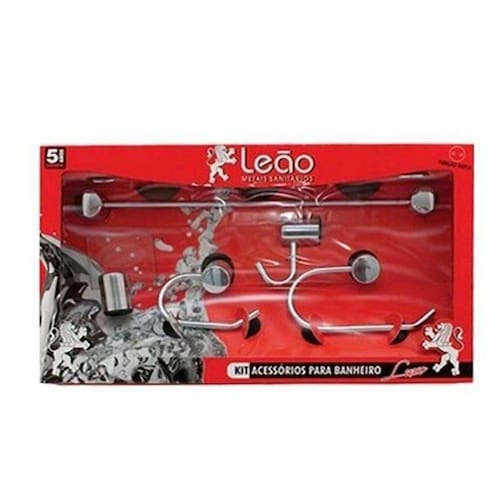 Leao kit de acessorios 16102 5 peças luxo cromadoKit de acessórios para banheiro linha luxo. Contém 1 porta toalha de rosto, 1 porta toalha de banho, 1 cabide, 1 papeleira e 1 saboneteira. Acompanha itens para instalação: 6 canoplas, 12 buchas e 12 parafusos. Ambiente de utilização: banheiro. Garantia do fornecedor: 60 meses. Garantia aplicável para vícios ou defeitos de fabricação.