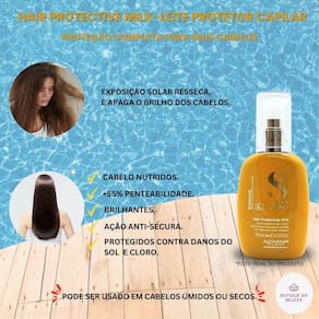 Somos a butique da beleza Uma empresa especializada no comércio de cosméticos e semijoias. Estamos sempre entre os melhores vendedores. Nosso compromisso é com você Seu conforto e segurança são nossos propósitos Servir e ajudar são nossos deveres Hair protective milk- semi di lino alfaparf Proteção superior para cabelos expostos ao sol Você sabia que seus cabelos também precisam de proteção solar Os raios solares são implacáveis não só com a pele, mas também com os seus cabelos. O hair protective milk é a resposta para quem busca preservar a beleza e saúde dos fios durante a exposição solar. Dê aos seus cabelos a proteção que eles merecem. Um cuidado superior, pensado especialmente para você que ama o sol mas não abre mão da saúde e beleza dos seus fios. Indicado para qual tipo de cabelo Ideal para quem passa longas horas ao ar livre, na praia ou piscina. Especialmente eficaz para cabelos secos, quebradiços e com frizz. Benefícios: Proteção uv avançada, combate os danos causados pelos raios solares, evitando o ressecamento e a perda de cor. Hidratação e maciez: fios profundamente hidratados e incrivelmente macios ao toque. Brilho e leveza: cabelos leves, brilhantes e com aparência saudável. Redução de quebra e pontas duplas: os ingredientes hidratantes ajudam a fortalecer os fios, reduzindo a quebra e as pontas duplas. Suavidade ao pentear: facilita o desembaraço, tornando o penteado mais suave e menos propenso a danos. Proteção contínua: a fórmula contínua ajuda a manter a proteção uv ao longo do dia, mesmo após exposição prolongada ao sol. Controle do frizz: mantenha seus cabelos sob controle, mesmo nas condições mais adversas. Resultados Protege e hidrata , para cabelos brilhantes, sedosos e protegidos mesmo ao sol. Modo de uso Distribua o hair protective milk ao longo do comprimento e pontas dos cabelos. Frequência: aplique antes, durante e após a exposição ao sol. Versatilidade: pode ser em cabelos úmidos ou secos. Dicas da butique da beleza Para um cuidado completo e otimizado, recomendamos o uso da linha inteira semi di lino alfaparf sunshine. Combine o shampoo, a máscara after-sun e o hair protective oil para uma proteção e nutrição máxima. Essa combinação assegura que seus cabelos fiquem protegidos, hidratados e radiantes durante todo o verão. A utilização da linha completa garante que cada produto trabalhe em sinergia para resultados ainda mais impressionantes. Dúvidas frequentes O hair protective milk pode ser em cabelos tingidos Sim, o hair protective milk é seguro para cabelos tingidos. Além de proteger contra os raios uv, ele ajuda a preservar a cor dos fios, evitando o desbotamento. Posso usar o produto em cabelos molhados e secos Sim, ele pode ser aplicado tanto em cabelos úmidos quanto secos, proporcionando proteção e hidratação em ambas as condições. Quantas vezes por dia devo aplicar o produto Para proteção ideal, aplique antes, durante e após a exposição ao sol. A frequência pode variar conforme a necessidade e o tempo de exposição. O produto pesa nos cabelos finos Não, sua fórmula leve e cremosa é projetada para hidratar sem pesar os fios, sendo adequada para todos os tipos de cabelo, inclusive os mais finos. Preciso reaplicar o produto se entrar na água Sim, para garantir a proteção contínua, é recomendável reaplicar o produto após nadar ou se molhar. Posso usar o hair protective milk diariamente Sim, ele pode ser diariamente, especialmente se você estiver exposto ao sol regularmente, garantindo a proteção constante dos seus cabelos.