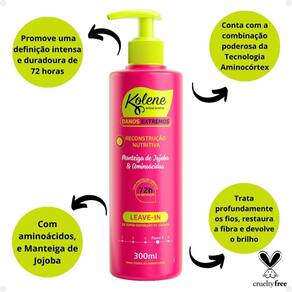 O Leave-In Danos Extremos tem como principal função oferecer hidratação profunda, definição intensa e proteção aos fios. Ele ajuda a restaurar a fibra capilar danificada e promove um brilho saudável, mantendo a definição dos cachos por até 72 horas.
