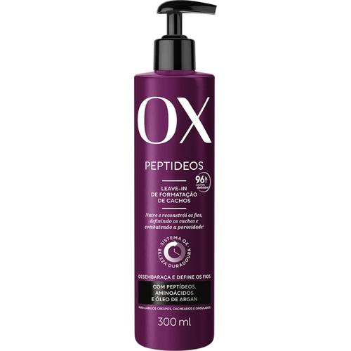 O Leave-In de Formatação de Cachos Ox Peptídeos A Linha OX Peptídeos é a ideal para cabelos com curvaturas. Isso porque os Peptídeos inteligentes se adaptam conforme a necessidade dos fios, penetrando nas regiões danificadas, preenchendo e restaurando os cabelos. O Óleo de Argan possui alto poder nutritivo que sela a cutícula retendo as vitaminas e proteínas dentro dos fios, combinados ao Sistema OX Beleza Duradoura, é a fórmula certa pra combater a porosidade e proporcionar cabelos reconstruídos e definidos por muito mais tempo, com 86% menos frizz. Sistema OX Beleza Duradoura é uma tecnologia exclusiva, capaz de liberar sequencialmente os ingredientes, proporcionando um tratamento prolongado aos fios. pH Leave-in OX Peptídeos: 3,50 a 4,00.