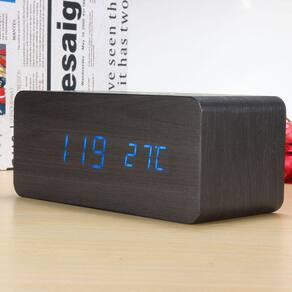 Material: Tipo de exibição de madeira: LED Display Time Mode: 12 horas / 24 horas Alimentado por: DC5V USB / 3 * pilhas AAA (não incluídas) Cor: Vermelho, Verde, Azul alternadamente tempo de exibição e temperatura; -Quando o LED se apagar, pode acordá-la pelos ponteiros das palmas ou acariciar o relógio.