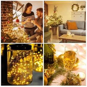 Halloween, Ano Novo e outras decorações de Natal. É rotativo e flexível, pode ser facilmente dobrado e flexível em qualquer formato desejado e enrolado na mobília para adicionar um belo toque decorativo. 3 baterias alimentadas por 3 baterias, cada compartimento de bateria adicionou resistência adicional, limitando a corrente, estendendo assim a vida útil da bateria para mais de 48 horas quando em iluminação contínua. 10 LEDs usarão LED duplo de 40x, com o mesmo efeito. Brilho de 360° para um belo efeito. As luzes LED não são superaquecidas, seguras ao toque\ nUso seguro e à prova d'água\ N- O cabo flexível, mas durável, com luzes LED é totalmente submersível, a parte do fio de cobre na água para obter efeitos de iluminação incríveis, a bateria não está incluída. Somente as luzes de corda são à prova d'água, a bateria não é à prova d'água. Fácil de esconder - o compartimento de bateria de tamanho pequeno tem 2,3* 5 cm, o que torna a luz de fada fácil de esconder, muito perfeita para decorar seu presente de Dia dos Namorados, decoração de mesa, festa em casa ou guarda-chuva transparente, faça uma fantasia de medusa bacana para seus filhos ou qualquer outro projeto de iluminação exclusivo que você queira. -Por que escolher LED String Lights? Perfeito para criar um ambiente harmonioso e romântico para sua casa. Parece que muitas estrelas piscam quando você coloca as luzes na jarra de vidro. O fio de cobre prateado é flexível, você pode dobrá-lo em qualquer formato ou envolvê-lo em qualquer coisa que quiser, como coroas de flores, árvores, plantas, decoração de flores, casamento. Espaçosos utilizados para seu pátio, terraço, varanda frontal, sala de estar, cozinha, jardim, etc. Eles são impermeáveis, pequenos e portáteis. -Características das luzes de corda LED: seguras de tocar\ nFácil de moldar\ nPequenas e portáteis\ nImpermeáveis\ nBaixo consumo de energia\ nEspecificações: Cor do LED: quente\ nQuantidade de LED: 10 LED/quadro\ nComprimento da corrente: 1m/cada corrente-