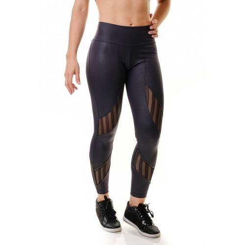 Características Estilo clássico, tecido com leve brilho Recortes em tela Frisos dourados de tecido metalizado que dão um requinte especial para a legging Cintura alta com elástico interno Tecido de poliamida 90% e elastano 10% - dourado e tela; 88% poliamida e 12% elastano - preto brilhante Benefícios Conforto, segurança durante seus movimentos Cintura alta esconde gordurinha localizada Não desce no corpo Sem transparência Tecido com proteção UV 50+, mais proteção para sua pele e saúde contra raios ultra-violeta Tecnologia easy-care (não precisa passar), maciez ao toque Secagem rápida Não desbota nem mancha Dicas de usoLegging para atividades físicas, treinos, funcional, yoga, academia, pilates, musculação, casual dia a dia