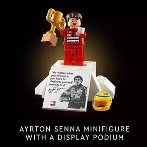 Desenvolvido em colaboração com a McLaren e a marca SENNA BRANDS, esta réplica em escala apresenta detalhes precisos que capturam a aparência do lendário piloto de 1988 – classificado como um dos carros de corrida de F1 de maior sucesso de todos os tempos. Este conjunto também apresenta uma minifigura exibível de Ayrton Senna.