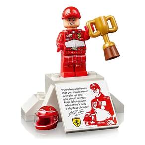 Inclui tudo o que você precisa para montar uma réplica detalhada do carro de corrida Ferrari F2004 F1, além de uma minifigura de Michael Schumacher, suporte de exibição, pódio de exibição, capacete do piloto e troféu