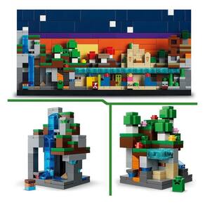 elebre a decoração icônica de Minecraft® com o conjunto de construção LEGO® Minecraft Mini Biomas (21589) para meninos e meninas a partir de 12 anos. Os jogadores de Minecraft podem exibir sua paixão pelo jogo para todos admirarem com 5 biomas de brinquedo e 5 microfiguras: Steve, Creeper™, Mooshroom, Husk e um saqueador. O conjunto LEGO Minecraft possui 5 biomas removíveis: montanha – com caverna de estalactites, geodo de ametista e cachoeira; floresta florida – com caverna, lava e ouro; campos de cogumelos – com recife de coral, naufrágio, 2 árvores de cogumelos vermelhos e um cogumelo marrom; deserto – com templo, recife de coral, oceano, cactos e baú do tesouro; e savana – com posto avançado de saqueadores, caverna exuberante, acácias, abóbora, lava e praia. Também inclui um cenário reversível (dia/noite). Este conjunto é um ótimo presente para jogadores de Minecraft e fãs de LEGO. E, com o aplicativo LEGO Builder, as crianças podem construir com confiança: ampliar, girar em 3D e acompanhar o progresso com instruções digitais fáceis de seguir. O conjunto contém 797 peças. O conjunto de 797 peças mede mais de 11 cm de altura, 24 cm de largura e 7 cm de profundidade.