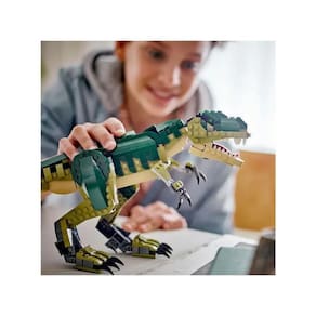 LEGO apresenta o conjunto LEGO Creator T. Rex 3em1 31151 com 626 peças. Meninos e meninas maiores de 9 anos podem viajar no tempo para viver emoções incríveis com este brinquedo de dinossauro T. Rex. O brinquedo de Tyrannosaurus rex é altamente articulável, para que as crianças possam mover sua cabeça, pés, cauda, mandíbula, pernas, braços e até mesmo dedos e calcanhares, em diferentes poses. O brinquedo de T. Rex também vem com um ninho com 2 pequenos elementos de ovos de dinossauro e juntos eles fazem uma exibição impressionante em uma prateleira ou mesa de cabeceira. Este conjunto de construção de brinquedo de dinossauro LEGO oferece às crianças um mundo de possibilidades de brincadeiras emocionantes com 3 brinquedos de dinossauro diferentes para construir usando as mesmas peças. Elas podem criar um T. Rex articulável, reconstruí-lo em um temível triceratops com 3 chifres, ou transformá-lo em um pterodáctilo com grandes asas móveis. Os kits de construção LEGO Creator 3em1 são ótimos presentes para crianças em qualquer ocasião, com 3 opções para criar em cada caixa. Os conjuntos 3em1 oferecem uma série de modelos construídos com peças que apelam às maiores paixões das crianças, incluindo veículos legais, animais incríveis e cenas de cidades detalhadas.