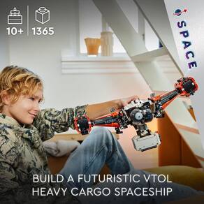 Os entusiastas do espaço podem desfrutar de uma construção inesquecível com a nave espacial de carga pesada LEGO Technic tm VTOL LT81 42181 para crianças a partir de 10 anos que adoram brinquedos de aviões espaciais. Este modelo futurista de veículo espacial tem muito para despertar a curiosidade enquanto as crianças realizam emocionantes missões de transporte de carga em planetas distantes. O conjunto está repleto de recursos interessantes, incluindo engrenagens que giram os motores, estendem e retraem o trem de pouso e abaixam a garra para agarrar a cápsula de carga carregada com um mini rover espacial. Há até uma alça na parte superior para que os jovens fãs do espaço possam voar com esta nave espacial futurista pela sala enquanto brincam. Para levar as aventuras espaciais para a próxima dimensão, este conjunto também inclui um elemento especial de bloqueio de ar espacial para conectar a outros conjuntos LEGO com tema espacial compatíveis vendidos separadamente . E com o aplicativo LEGO Builder, as crianças podem ampliar e girar modelos em 3D enquanto constroem, salvam conjuntos e acompanham seu progresso. Construa uma nave espacial de carga futurista - Jovens fãs do espaço com mais de 10 anos têm muito para explorar enquanto constroem e brincam com este conjunto de brinquedos de avião espacial LEGO Technic tm VTOL Heavy Cargo Spaceship LT81 Trem de decolagem e pouso verticais - As crianças podem acionar e retrair o trem de pouso enquanto exploram as possibilidades e os desafios de viver e trabalhar em diferentes planetas por meio de brincadeiras imaginativas Transporte a carga - Inclui um mini rover espacial que pode ser carregado na cápsula de carga e pendurado sob a nave espacial usando a garra extensível Alça e motores giratórios - Jovens exploradores espaciais podem agarrar a alça, girar os motores e maravilhar-se com a cabine autonivelante enquanto realizam diferentes manobras de voo Um brinquedo com tema espaçado - É uma ideia divertida de presente para crianças a partir de 10 anos que estão interessadas em viagens espaciais e brinquedos de aviões futuristas Elemento de bloqueio de ar - Vem com um elemento de bloqueio de ar espacial especial para que as crianças possam conectar este modelo a outros conjuntos LEGO com tema espacial compatíveis vendidos separadamente para ainda mais aventuras de viagens espaciais Uma introdução à engenharia - os conjuntos LEGO Technic tm apresentam movimentos e mecanismos realistas que apresentam aos construtores LEGO o universo da engenharia de uma forma acessível e realista Dimensões - Este conjunto de 1.365 peças inclui uma nave espacial medindo mais de 19 cm de altura, 52 cm de comprimento e 47 cm de largura.