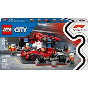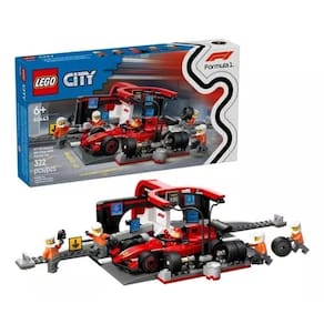 Lego 60443 City Formula 1 - Pit Stop E Equipe Da F1 Com Carro Ferrari – 322 peças Leve a emoção da pista de corrida para a brincadeira das crianças com o conjunto de construção de veículo de brinquedo LEGO City F1 Pit Stop e Equipe de Box com Carro Ferrari (60443) para crianças de 6 anos ou mais. Este conjunto inclui tudo o que as crianças precisam para paradas nos boxes extremamente rápidas, incluindo pneus novos, pistolas de rodas e uma equipe que se posiciona com o toque de um botão para trocas de pneus turboalimentadas. Completo com um carro de corrida de Fórmula 1® Ferrari de brinquedo, além de minifiguras de piloto e 4 equipes de box, este conjunto de jogo é ajustado para jovens entusiastas de corrida.