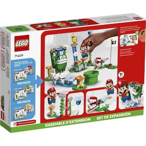 As crianças podem criar seu próprio céu LEGO Super Mario com o Pacote de Expansão - Desafio nas Nuvens de Espigão Grande 71409 . Eles vêm com desafios familiares dos videogames Super Mario e figuras LEGO de 3 inimigos populares - um Espigão Grande, um Irmão Bumerangue e uma Planta Carnívora. Os jogadores ganham moedas digitais por ajudarem suas figuras LEGO Mario, LEGO Luigi ou LEGO Peach não inclusos a lutar contra o Espigão Grande, pular nos cogumolas laranjas para chegar ao Irmão Bumerangue, usar o Bloco de Super Estrela e muito mais. nota: é necessário o Pack de Início 71360, 71387 ou 71403 para jogar . Aplicativo complementar Baixe o aplicativo LEGO Super Mario ele possui instruções de construção, dicas inspiradoras e outras coisas divertidas para melhorar a experiência criativa das crianças. O melhor presente Este conjunto de brinquedo é um presente incrível para crianças a partir de 7 anos que gostam de lançar moda e é ideal para jogo individual ou social. Os Packs de Início e os Conjuntos de Expansão LEGO Super Mario permitem aos fãs expandir, reconstruir e criar seus próprios níveis para muitas horas de brincadeira pegando moedas.