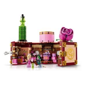 As crianças escaneiam o código QR oculto do conjunto para acessar o conteúdo exclusivo LEGO® Wicked e cantar junto com o sucesso "Popular" do filme. Ao colocar as mini-bonecas no suporte giratório, as crianças fazem os personagens "dançar" junto com a música! Quando a peça acabar, feche o quarto e transforme-o no baú de Glinda, que pode ser trancado com uma chave!
