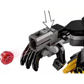 A minifigura usa uma capa de tecido e segura outro Batarang, que pode ser guardado no braço direito do robô.
