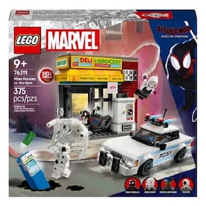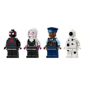O conjunto de jogos do Homem-Aranha vem com 4 minifiguras: Miles Morales, The Spot, Gwen Stacy e o Oficial Jefferson. A loja de conveniência tem um recurso de parede explosiva que permite que o caixa eletrônico seja removido. Os acessórios incluem uma corda de teia longa e flexível e uma teia flexível que é grande o suficiente para envolver uma minifigura. O carro da polícia abre para permitir que 2 minifiguras sejam colocadas dentro. Para diversão digital adicional, os construtores podem aumentar o zoom, girar modelos em 3D e acompanhar seu progresso usando o aplicativo divertido e intuitivo LEGO Builder.