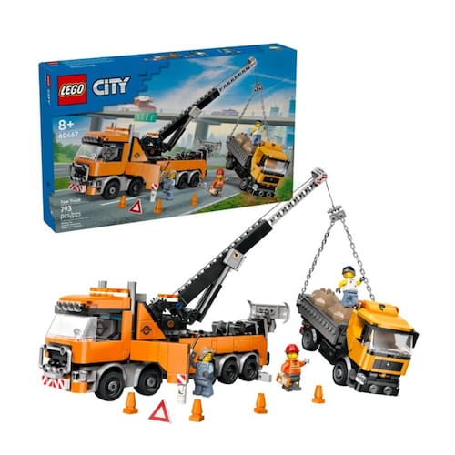 Fãs de veículos de brinquedo e brincadeiras de faz de conta vão adorar este conjunto LEGO City Caminhão Reboque de Recuperação Pesado com Guindaste com dupla função. O caminhão de reboque giratório de brinquedo vem com um guindaste funcional, estabilizadores e um elevador com guincho para carregar os veículos para reboque. As crianças também ganham um caminhão basculante funcional com uma carga de 2 pedras enormes, e o conjunto vem com 3 minifiguras LEGO para emocionantes aventuras de resgate de veículos.