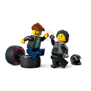 Inclui tudo o que as crianças precisam para construir um caminhão de corrida de brinquedo, um carro de corrida e 2 minifiguras de piloto de corrida para deixar a brincadeira ainda mais completa.