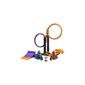 As crianças maiores de 6 anos podem encenar emocionantes shows, jogos e competições com este conjunto LEGO City Desafio de Acrobacias com Anéis Giratórios 60360 , que contém anéis de salto giratórios duplos, 2 rampas e 2 motos com roda de inércia. Basta adicionar os 2 motoqueiros de LEGO City Stuntz e começara diversão.