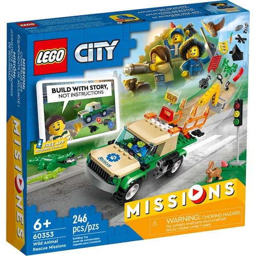 Marca: LEGO Linha: City Modelo: Missoes Resgate De Animais Selvagens Quantidade de Peças: 246 Idade Recomendada: 6+ Nível de dificuldade: Médio Material: Plástico Conteúdo da Embalagem: Peças e Manual de Montagem Ilustrado Número do Certificado do INMETRO: CE-BRI/INNAC 001205-05A