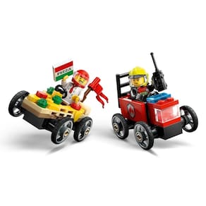 Presenteie seu fã de corrida com o LEGO City Pizza vs. Fire Truck Race Car Pack (60458) para crianças de 5 anos ou mais.