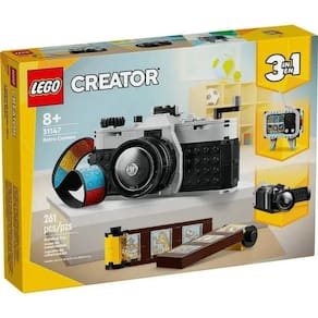 O LEGO Creator 3 em 1 Câmara Retro (31147) traz uma proposta criativa e nostálgica para os fãs de LEGO e entusiastas de fotografia. Com 261 peças, este conjunto oferece a possibilidade de construir uma câmara fotográfica clássica, mas também proporciona a opção de transformar a construção em outros dois modelos diferentes: uma máquina de escrever retro ou um rádio vintage. Esta versatilidade 3 em 1 garante que cada experiência de montagem seja única, permitindo que os construtores explorem várias formas de criação e se divirtam com cada transformação.
