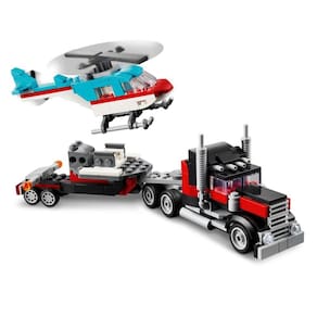Desperte a imaginação de meninos e meninas a partir de 7 anos com o empolgante conjunto Lego Creator Caminhão Flatbed com Helicóptero, repleto de 270 peças que oferecem uma experiência 3 em 1 repleta de aventuras em alta velocidade. Este conjunto permite a construção de um caminhão transportador com rodas móveis, capaz de transportar um helicóptero Lego com pás de rotor giratórias em seu trailer.