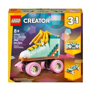 Crianças criativas maiores de 8 anos podem voltar no tempo com este conjunto de construção LEGO Creator Patins Retrô (31148) colorido. Ele contém um brinquedo LEGO de patins com 4 rodas rosas móveis, um freio rosa, cadarços amarelos grossos e um conjunto de peças coloridas para que as crianças possam decorar o calcanhar da bota com seus próprios designs.