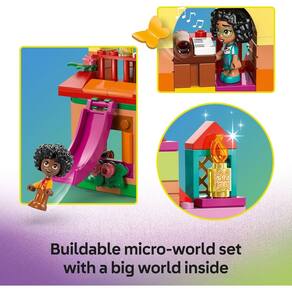 O conjunto de micromundo para construir é um pequeno conjunto com um grande mundo por dentro e por fora, abrindo para revelar várias áreas para uma narrativa criativa. Há também 3 personagens LEGO® | Disney, um escorregador e outros iniciadores de história. Após a brincadeira, o modelo de construção de microcasa Madrigal pode ser fechado e trancado com a chave, tornando-o um bom tamanho para diversão portátil em qualquer lugar. Este divertido presente de aniversário para meninas e meninos está repleto de recursos e acessórios para inspirar a dramatização e ajudar a aumentar a confiança das crianças enquanto elas criam suas próprias histórias ou repetem cenas favoritas de filmes. O kit de modelo de fantasia montável pode ser utilizado de forma independente ou adicionado a outros conjuntos LEGO | Disney (vendidos separadamente). Além disso, as crianças podem aproveitar uma aventura de construção fácil e intuitiva com o aplicativo LEGO Builder, que permite que elas ampliem e girem modelos em 3D, salvem conjuntos e acompanhem o progresso. Brinquedo de construção para crianças – Presenteie meninas e meninos de 5 anos ou mais com este kit de modelo Disney's Encanto Mini House da casa Madrigal, que está pronto para uma brincadeira de faz de conta imaginativa e pode ser utilizado como uma exibição divertida Micromundo de brinquedo de fantasia – Este brinquedo de construção envolvente apresenta uma casa que abre com chave, figuras de microbonecas LEGO® | Disney de Mirabel e Antonio e uma figura de animal LEGO | Disney de capivara Funções divertidas