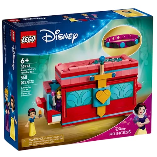 Descrição do produto : Encante crianças e fãs da Disney com mais de 6 anos com o presente premium deste conjunto de brinquedo montável LEGO Disney Caixa de Joias da Branca de Neve (43276). Ele apresenta uma caixa com uma tampa que abre e alças em cada lado que se abrem para revelar salas escondidas, uma espada e cadeado de corrente, figuras de minibonecas LEGO Disney da Branca de Neve e a Rainha Má e uma pulseira colorida com muitos elementos de decoração para projetar, usar ou compartilhar. : Detalhes técnicos : Marca: Lego : Referência: 43276 : Idade recomendada: 6 : Quantidade de peças: 358 : Possui Luzes: Não : Possui Sons: Não : Dimensões aproximadas da embalagem: 26 x 22 x 8 cm (A x L x C) : Ean: 673419400954 :