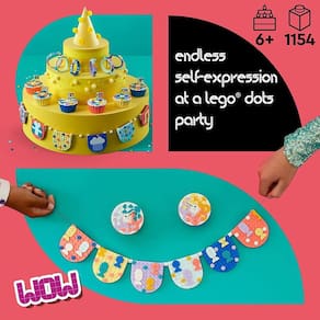 Os conjuntos DOTS apresentam as crianças à diversão da brincadeira e experimentação LEGO enquanto criam e decoram os diferentes conjuntos, porque a magia e o controle estão na imaginação da criança. Este kit é uma atividade em grupo divertida com presentes para levar para casa em qualquer festa ou reunião.