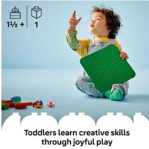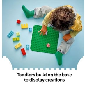 sta base de exposição verde para crianças de 24x24 pinos, medindo mais de 9 pol. (25 cm) quadrados, é o ponto de partida ideal para a brincadeira criativa das crianças. Ela segura os tijolos firmemente em qualquer ângulo (mesmo de cabeça para baixo!) e abre um mundo infinito de possibilidades de brincadeiras imaginativas: de jardins gramados a selvas exóticas e encostas íngremes de montanhas a máquinas voadoras verdes e legais. E, quando a construção para, o presente de placa de base LEGO DUPLO fornece a solução perfeita para uma maneira sem colapso de transportar e exibir a construção criativa das crianças. Os pais podem compartilhar marcos preciosos do desenvolvimento, pois os brinquedos envolventes LEGO DUPLO colocam diversão sem limites, autoexpressão e confiança nas mãos das crianças. Base de exposição para crianças em idade pré-escolar – O brinquedo de construção Green Building Plate oferece às crianças em idade pré-escolar a partir de 18 meses uma base resistente para brincadeiras criativas Placa de base LEGO® DUPLO® verde – Esta grade quadrada de 24x24 pinos vem em verde clássico e tem centenas de pinos perfeitamente alinhados para dar aos pequenos construtores a pegada certa para todas as suas construções criativas Aumente a brincadeira criativa