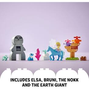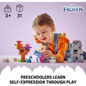 As crianças pequenas aprofundarão a sua capacidade de se expressarem assistindo a um filme ou inventando as suas próprias histórias. Este fantástico kit de construção oferece muitos detalhes fascinantes que incentivam diretamente a narração de histórias. Elsin usou o cristal e a sua vida neste lugar. À medida que o Gigante da Terra edificável se aproxima, a Chama de Bruni aparecerá. Mas os personagens se tornam amigos quando percebem que todas as criaturas ajudam a manter a natureza em equilíbrio. A miniboneca Elsa salta sobre a figura do cavalo Nokka e o redemoinho das folhas de outono as leva para a próxima aventura. Este conjunto de construção LEGO® DUPLO® | Disney baseado no filme Frozen 2 permitirá que os pais e outros entes queridos vivenciem importantes marcos de desenvolvimento junto com seus filhos. Brinquedo de fantasia montável para pequenos fãs de Disney Frozen 2 – Leve as crianças em uma aventura de Disney Frozen 2 com este brinquedo de construção LEGO® DUPLO® | Disney Elsa e Bruni na Floresta Encantada Brinquedo de construção Disney Frozen 2 para crianças a partir de dois anos – Inclui uma cena de floresta para construir, uma miniboneca Elsa, as figuras da salamandra Bruni e do cavalo aquático Nokk e uma figura do Gigante da Terra Brinquedo de construção LEGO® DUPLO® para crianças em idade pré-escolar – As crianças desenvolvem a autoexpressão imaginando que são Elsa ou Bruni e o cavalo aquático Nokk através da floresta para fazer amizade com o Gigante da Terra Inclui acessórios reconhecíveis do filme