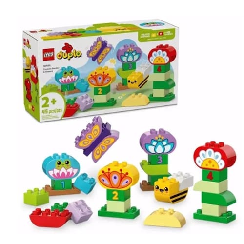 Ajude a criatividade e as habilidades motoras finas do seu filho a florescer com o brinquedo empilhável LEGO® DUPLO® Town Jardim Criativo e Flores (10444). Com 45 peças para construir flores coloridas e brinquedos fofos de animais e insetos LEGO DUPLO, este conjunto de construção inspira crianças criativas a construir um cenário de peças de beleza em constante mudança. Este brinquedo de aprendizagem estimula a imaginação das crianças em idade pré-escolar, ajudando-as a recriar o mundo que veem todos os dias.