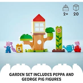 Incentive as crianças 2+ a abraçarem a vida no exterior com o set LEGO® DUPLO® Jardim e Casa da Árvore da Porquinha Peppa (10431). Este brinquedo divertido estimula a paixão de rapazes e raparigas pela natureza enquanto encenam um dia passado no jardim a ajudar a Peppa e o Jorge a cultivar um girassol.