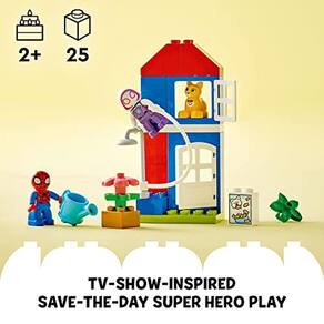 Super Heroes: Ages 2 e mais entram em ação enquanto interpretam seus personagens favoritos em LEGO DUPLO: Marvel Spider-Man's House (10995) construindo brinquedo para crianças de 2+ anos e crianças. Inspirado na série de TV do Disney+ Spidey and his Amazing Friends, as crianças usam tijolos DUPLO para criar cenas da série enquanto giram uma teia para salvar o gato, dar à planta uma bebida com o regador de brinquedo e, em seguida, fazer a planta crescer. Há muito para entreter os pequenos fãs. Este brinquedo de construção do Homem-Aranha vem com 3 minifiguras – Spidey, Ghost-Spider e uma Bootsie a figura do gato, além de uma planta que as crianças podem cultivar adicionando tijolos ao caule, um elemento de teia que permite que os personagens girem em torno de um poste de iluminação, assim como no programa de TV, e abrindo portas e janelas que são perfeitas para dedos curiosos explorarem. Os conjuntos de construção de brinquedos LEGO DUPLO inspiram diversão, autoexpressão e aprendizagem alegre para os pequenos e permitem que pais e crianças compartilhem momentos preciosos de desenvolvimento enquanto constr e brincam juntos. Este conjunto de super-heróis será um ótimo presente para crianças de 2 a mais anos e fãs do super-herói que adora o Homem-Aranha e brinquedos de ação. Este presente Spidey build-and-play mede mais de 8,5 pol. (21 cm) de altura, 3,5 pol. (9 cm) de largura e 3 pol. (8 cm) de profundidade. Contém 25 peças.