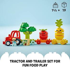 O LEGO DUPLO Meu Primeiro Trator de Frutas e Vegetais (10982) é um brinquedo de aprendizagem para crianças de 1,5 a 3 anos que oferece muitas maneiras divertidas de crescer com a diversão dos blocos DUPLO. Os pequenos se juntam ao agricultor para colher suas frutas e vegetais. O conjunto inclui um trator dirigível e 3 reboques para crianças a partir de 18 meses. Ele aprimora suas habilidades motoras enquanto aprendem sobre como frutas e vegetais crescem ao empilhar os blocos para fazer as plantas crescerem. Há muita diversão de classificação de cores com os brinquedos de frutas e vegetais as crianças podem combinar a planta com seu reboque ou usar sua criatividade e autoexpressão para misturar as cores ou até mesmo trocar os rostos! Todos os brinquedos LEGO DUPLO são projetados com narrativas divertidas, cores brilhantes, personagens envolventes e muitos detalhes para desenvolver as habilidades iniciais dos pequenos aprendizes. Este conjunto é compatível com os outros brinquedos de construção educacionais da coleção Meu Primeiro Orgânico, bem como todos os outros modelos LEGO DUPLO, e é um ótimo presente para crianças de 1,5 a 3 anos