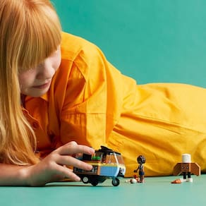 Inspire brincadeiras criativas com o conjunto LEGO® Friends Carrinho de Padaria Móvel (42606) para crianças maiores de 6 anos. Crianças que adoram brincar de faz de conta podem viver a história enquanto a Aliya visita o carrinho de padaria com sua cadelinha Aira. O conjunto inclui 2 mini bonecos, um cachorro, um carrinho, um mascote de padaria e acessórios. Os acessórios deste conjunto de comidas para crianças permitem que os pequenos criem suas próprias histórias enquanto ajudam o Jules a servir clientes no pequeno veículo de brinquedo. Os acessórios incluem um croissant, 2 maca rons, cookies, um pote de cookies, uma cafeteira, um copo de café, chocolate quente e um copo de chá, além de uma moeda e livro para a Aliya e um osso para Aira. Descubra mais ideias de presentes para crianças que adoram brinquedos de cozinha no universo LEGO Friends, onde há muitas oportunidades para contar histórias enquanto as crianças vivem aventuras da vida real. Este conjunto conta com o aplicativo LEGO Builder para uma aventura de construção fácil e intuitiva. Nele, as crianças podem ampliar e girar modelos em 3D, salvar conjuntos e acompanhar seu progresso.