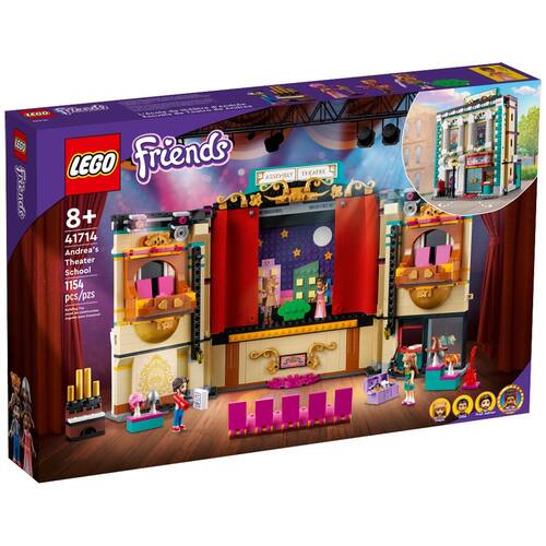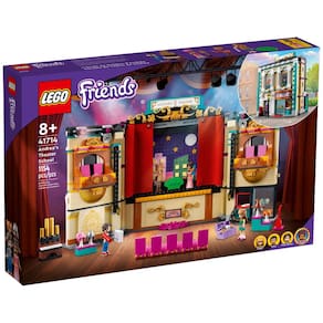 Permita que os seus pequenos possam criar com a imaginação! Deixe a criança imaginar que é uma estrela do palco com este belo edifício de teatro, onde as crianças vão adorar explorar os muitos acessórios deste modelo detalhado. O LEGO Friends: Escola de Teatro da Andrea conta com uma fachada vitoriana que se abre para criar o teatro, completo com orquestra e assentos na sacada. Também inclui adereços para brincar, assim as crianças podem criar seus próprios cenários dramáticos.