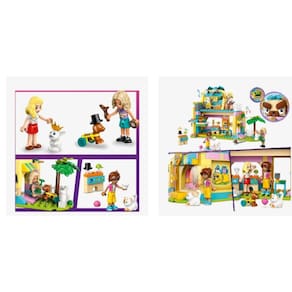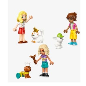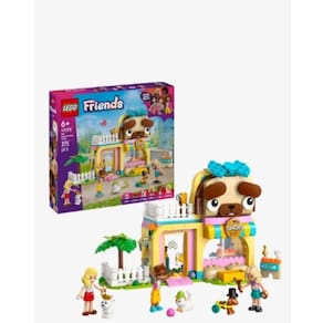 O conjunto vem com 3 minibonecas e figuras de gato, cachorro e coelho para brincadeiras imaginativas. Junte-se a Nova, Leo e Matilde enquanto eles escolhem novos chapéus e acessórios para seus amigos peludos Churro, Pickle e Amos. Leve os animais de estimação no elevador até a área de tosa, onde uma esteira rolante os move pelas estações de ensaboamento, lavagem e secagem. Depois, confira os acessórios em , incluindo um chapéu de chef, boné de beisebol e bola de lã. Há também dinheiro e uma caixa registradora para que as crianças possam criar seus próprios momentos de cliente. Cuidado com o cocô de cachorro! Felizmente, há uma pá para limpezas de emergência! Descubra mais detalhes engraçados, como o design do filhote do prédio, completo com sobrancelhas em movimento e arco giratório. Encontre mais kits de construção e presentes LEGO no universo LEGO Friends (conjuntos vendidos separadamente). Conjunto de construção de faz de conta para crianças – Esta loja de acessórios para animais de estimação para meninas e meninos de 6 anos ou mais vem com 3 minibonecas, além de figuras de gato, cachorro e coelho, e muitos acessórios para brincadeiras imaginativas Loja de brinquedos e acessórios para animais de estimação – O prédio de dois andares em formato de cachorro conta com uma loja de acessórios para animais de estimação e uma estação de tosa para que as crianças possam aproveitar horas de diversão mimando os animais Ande de elevador