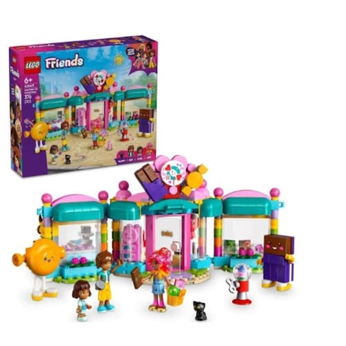 – O conjunto inclui muitos recursos de loja de doces, como a seleção de pick 'n' mix, um pirulito gigante, uma máquina de chicletes e uma área para fazer doces com ingredientes, tesouras e uma panela de cozimento Uma ideia de presente de aniversário – Este conjunto é um presente divertido de aniversário para crianças ou um presente para qualquer ocasião para meninas e meninos que gostam de brincadeiras criativas e visitas à loja de doces Show online – Inspire mais ideias de brincadeiras criativas com outros conjuntos (vendidos separadamente) e o show online LEGO® Friends: The Next Chapter, onde as crianças podem conhecer os personagens de Heartlake City Medidas – Conjunto de 376 peças com um modelo de loja de doces medindo mais de 4,5 pol. (11 cm) de altura, 6,5 pol. (16 cm) de largura e 6,5 pol. (16 cm) de profundidade