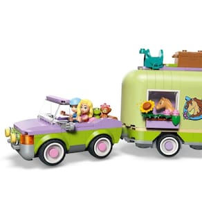 Deixe as crianças a partir de 7 anos se divertirem por horas com brincadeiras de faz de conta de cuidados com animais com o brinquedo de construção LEGO Friends Reboque para Cavalo e Potro (42695). Este conjunto para amantes de cavalos inclui 2 minibonecas, além de figuras de um cavalo, um potro, um cachorrinho e um sapo. Explore todos os aspectos dos cuidados com os animais usando os acessórios detalhados para escovar os cavalos, transportá-los no reboque e montar o cavalo no obstáculo. Há muitas maneiras diferentes para meninas e meninos brincarem com este conjunto de animais. Eles podem criar histórias para Autumn e Matilde enquanto dirigem o carro.